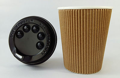 Promotion !!! ขายส่ง แก้วกระดาษ , แก้วกาแฟ Kraft Black ripple wall paper cup พร้อมฝา 1,000 ชุด